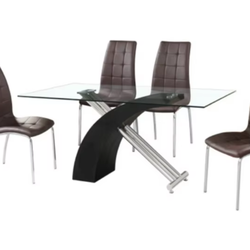 Dikdörtgen temperli cam yemek masası seti yuva tasarımı ile Metal krom bacaklar ve 4 PU sandalyeler şık yemek odası mobilyası